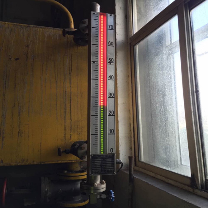 磁翻板浮子液位計(jì)當(dāng)液位上升時(shí),翻柱由白色轉(zhuǎn)為紅色,當(dāng)液位下降時(shí),翻柱由紅色轉(zhuǎn)為白色,指示器的紅、白界位處為容器內(nèi)介質(zhì)液位的實(shí)際高度。